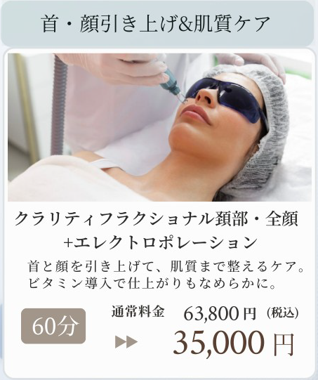 クラリティフラクショナル頚部・全顔+エレクトロポレーション(ビタミン導入)